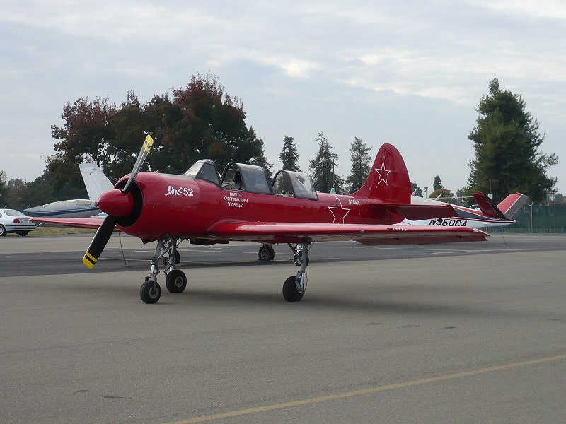 それを吹き飛ばすかのように、目が覚めるような真紅に身を包んだYak-52が飛来しました。